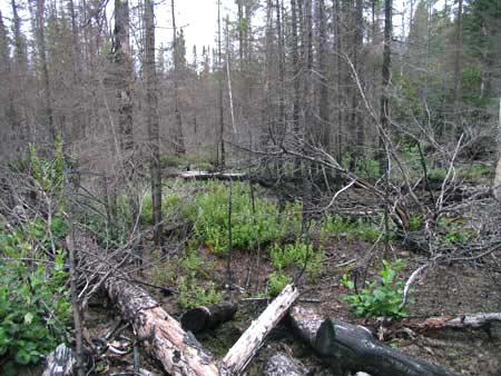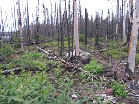 Even though the forest was largely destroyed by the fire, notice how the plants are coming back. |